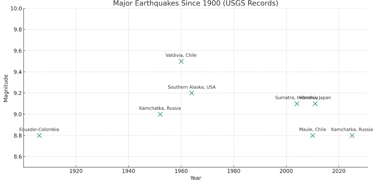 Earthquakes recorded 8.5 or higher on the Richter scale